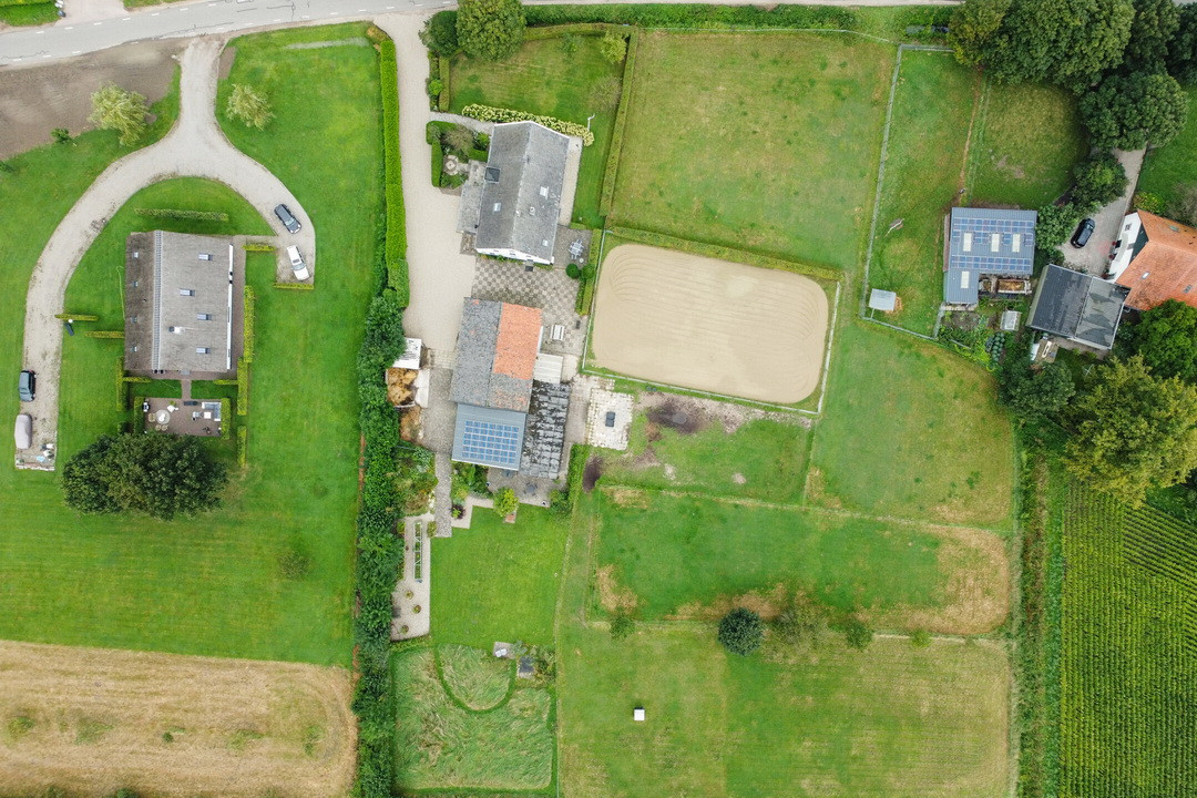 Op het erf staan diverse bijgebouwen waaronder een grote schuur met o.a. zes paardenstallen en een kapschuur met 21 zonnepanelen.