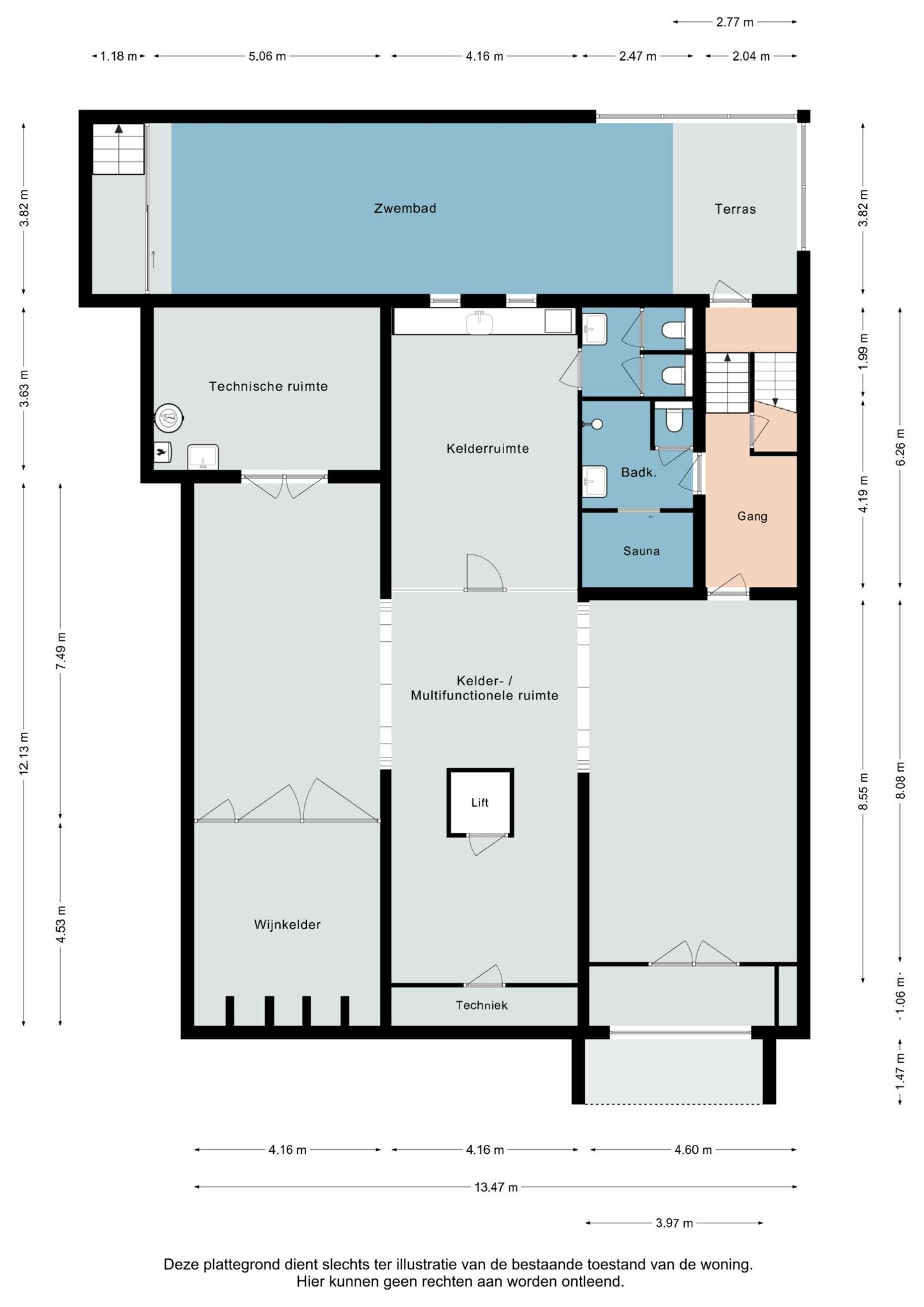 De technische installaties van het zwembad zijn netjes weggewerkt in een aparte ruimte in de kelder.