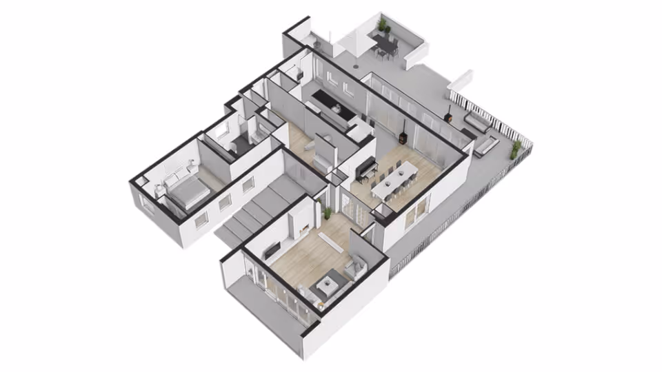 De woning is voorzien van een volledig domoticasysteem, waarmee onder andere de verlichting, screens, klimaat en beveiliging op afstand te bedienen zijn.