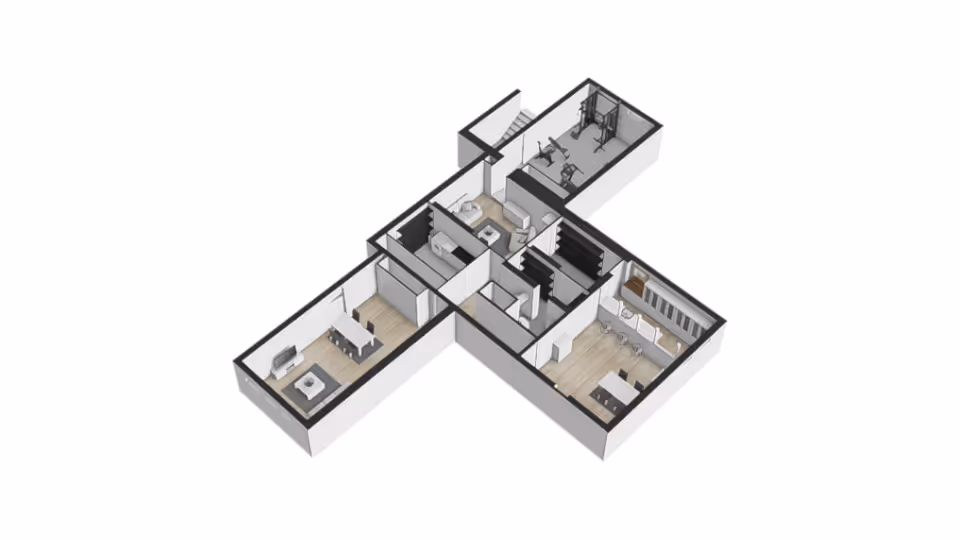 Verder beschikt de villa over een dubbele garage, een eigen gym en een afgewerkte mancave, ideaal als bar, thuisbioscoop of hobbyruimte.