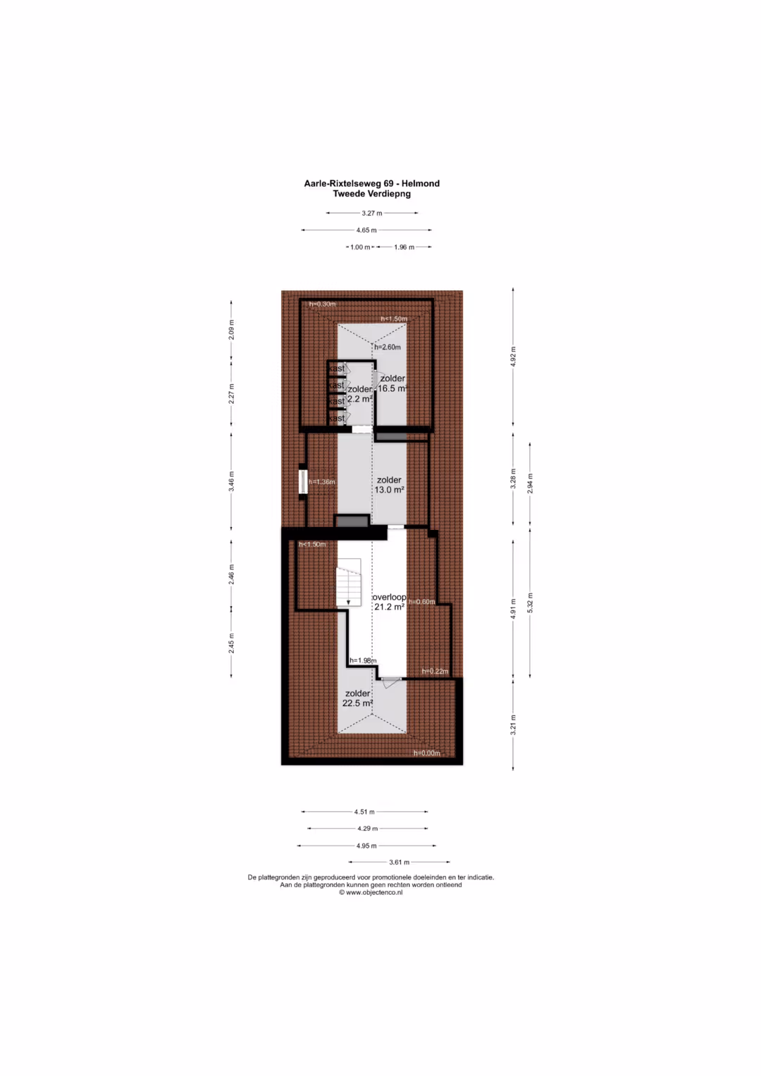 Een vaste trap leidt naar de tweede verdieping. Deze heeft een goede stahoogte en is maar liefst 75 m² groot met volop bergruimte. Op deze etage is een vierde slaapkamer gerealiseerd. Vanwege de riante afmetingen is er ruim de mogelijkheid nog een slaap- of