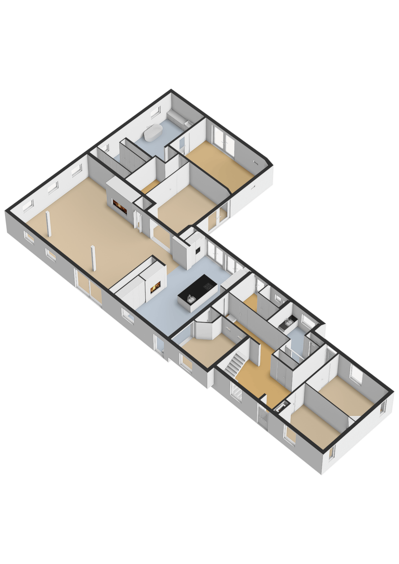 De royale woonkamer kenmerkt zich door de indrukwekkende open ruimte, strakke afwerking en een prachtige lichtinval door de rondom geplaatste raampartijen. De ruimte is speels ingedeeld en biedt volop mogelijkheden voor het creëren van meerdere zithoeken, waarbij comfort en sfeer centraal staan.