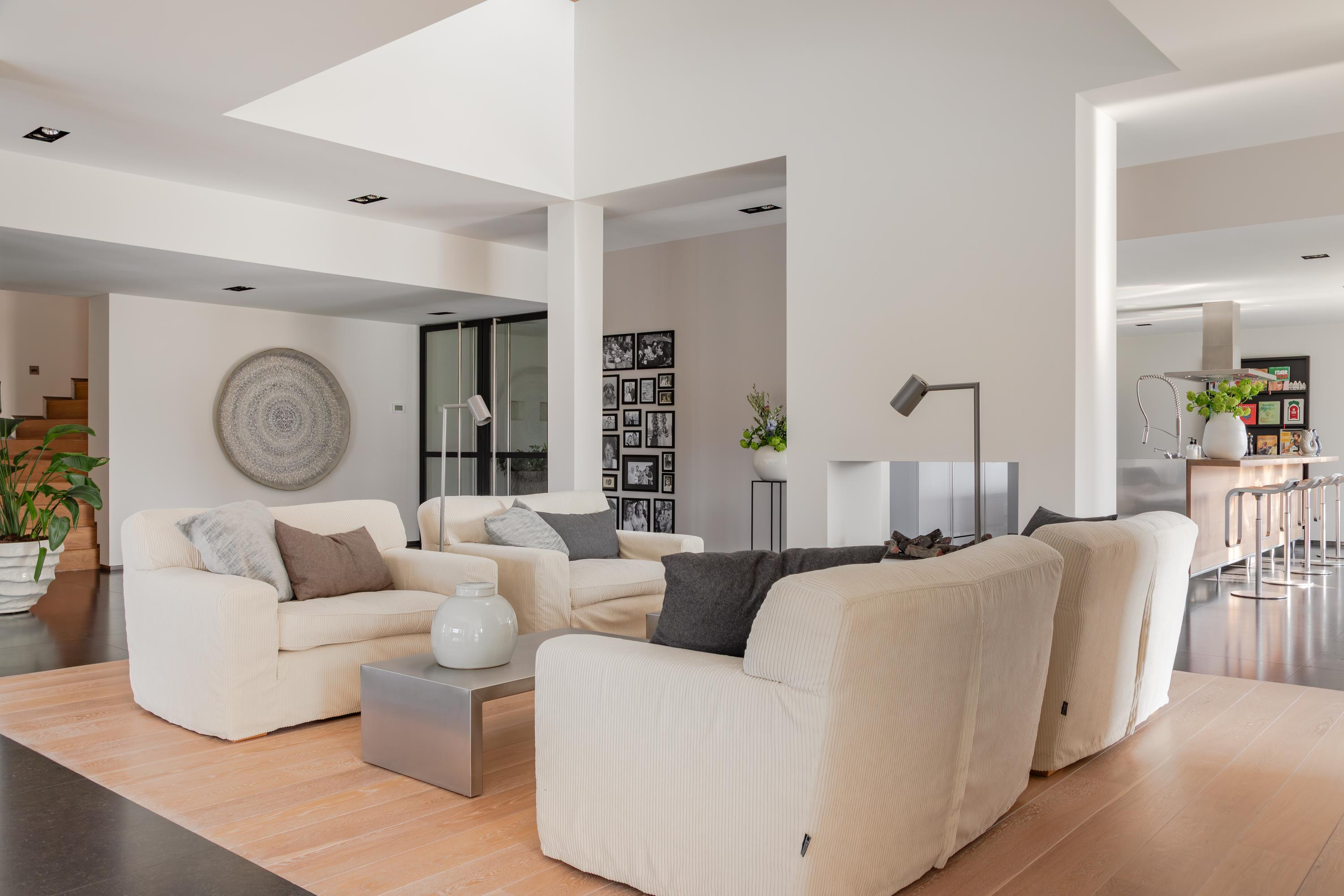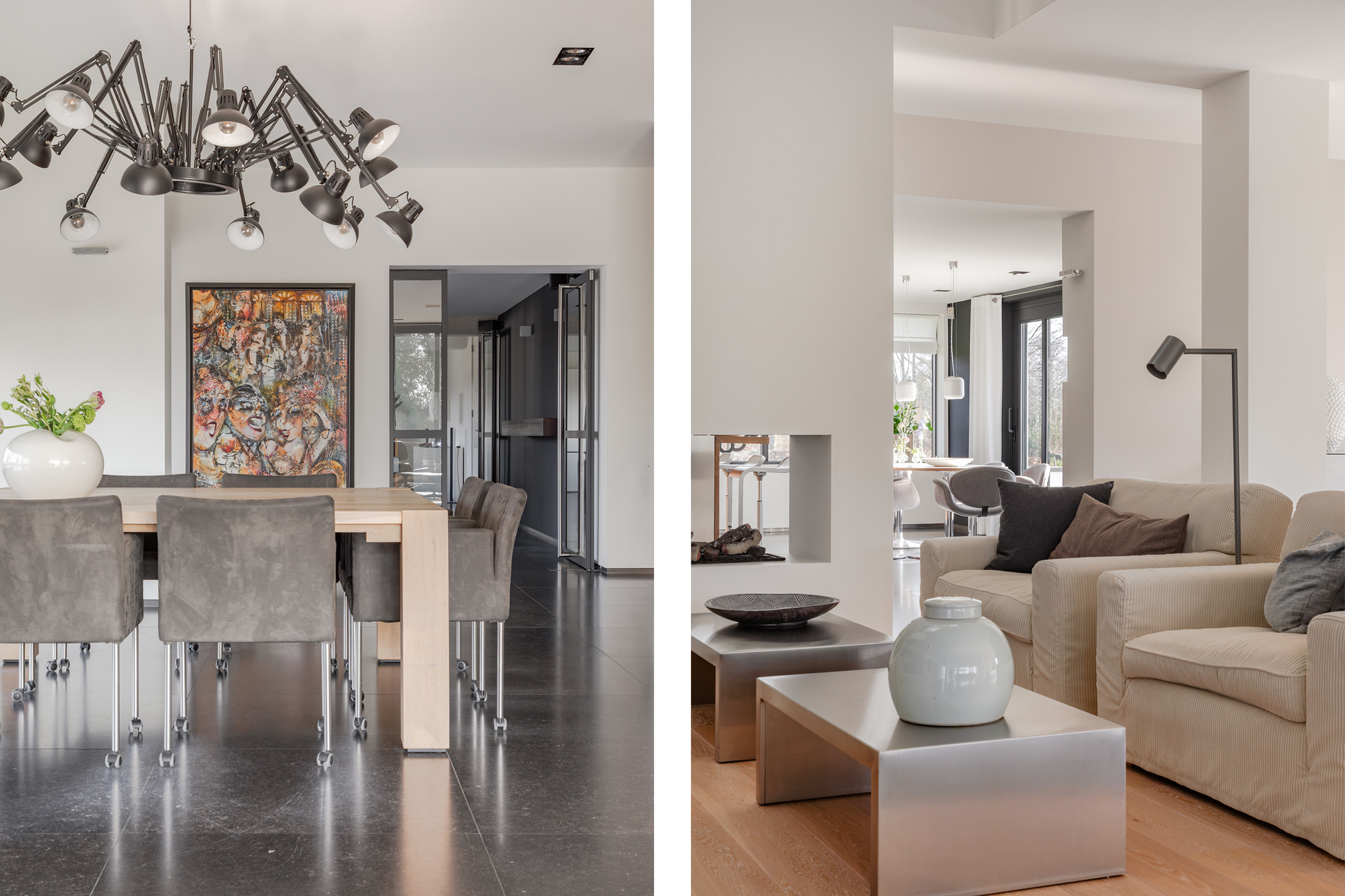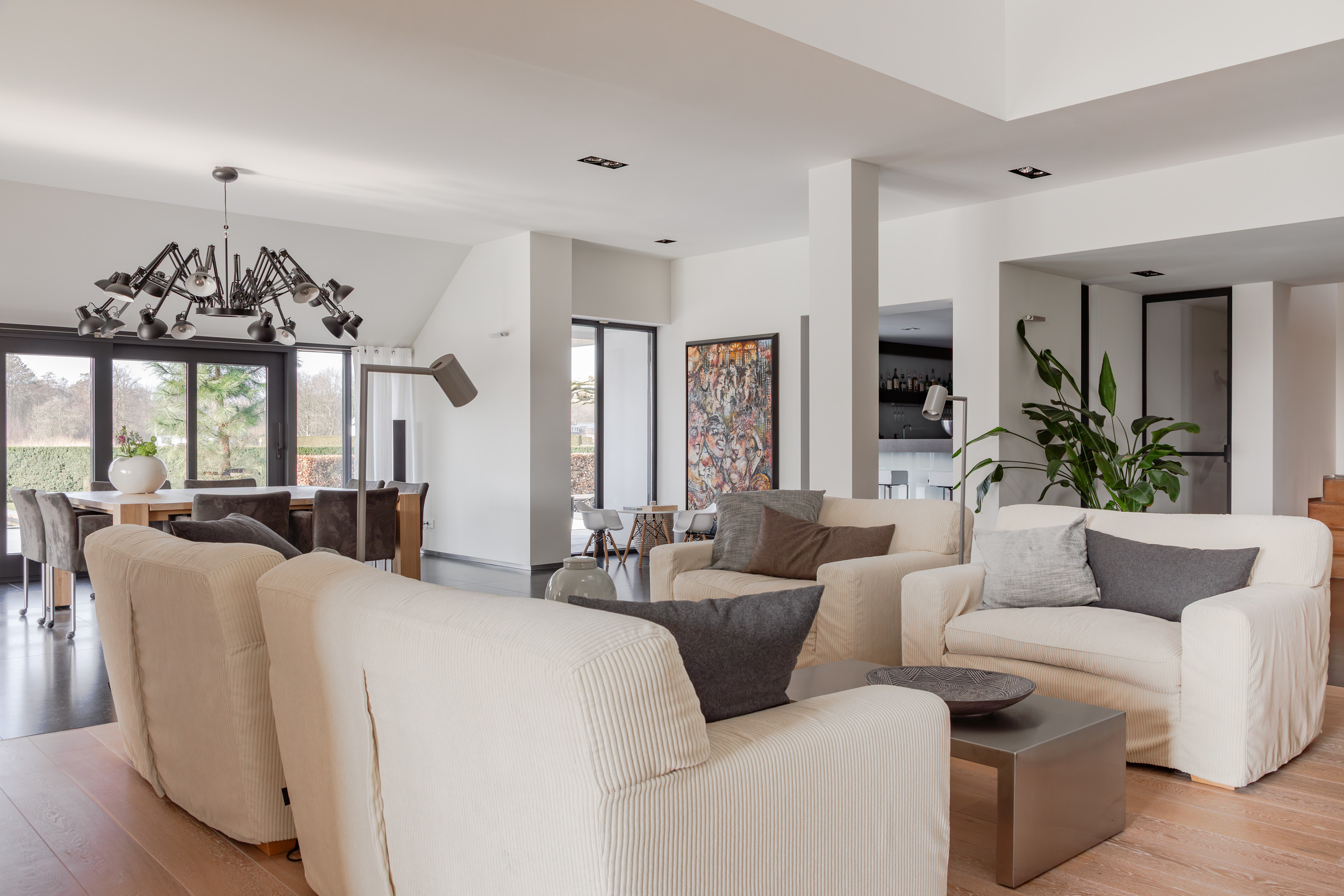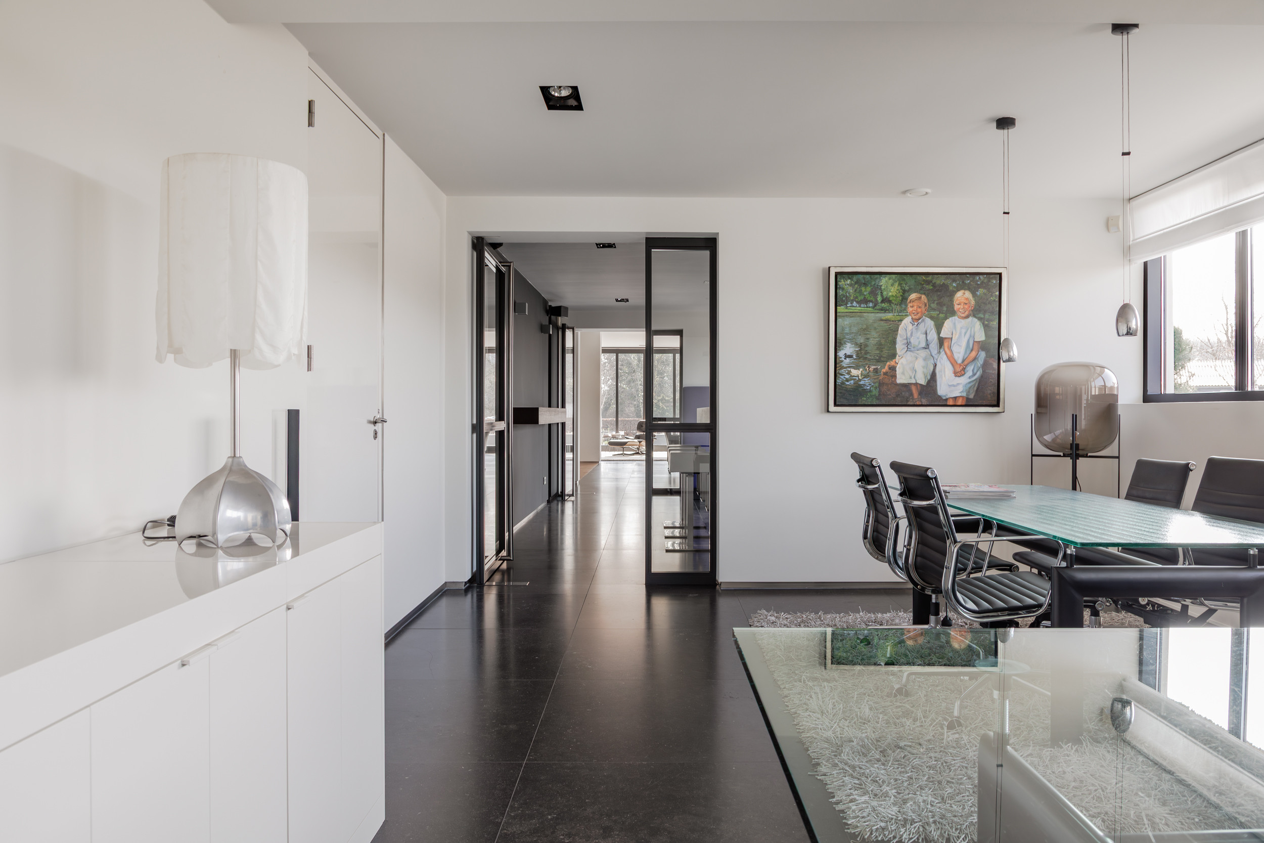 Via de imposante oprijlaan bereikt u de overdekte entree van de villa. Binnen verwelkomt een stijlvolle hal u in een woning waar ruimte en licht centraal staan. Hoge glazen deuren leiden naar de royale living, waar een indrukwekkende vide tot aan de tweede verdieping direct de architectonische kwaliteit van het huis laat zien.