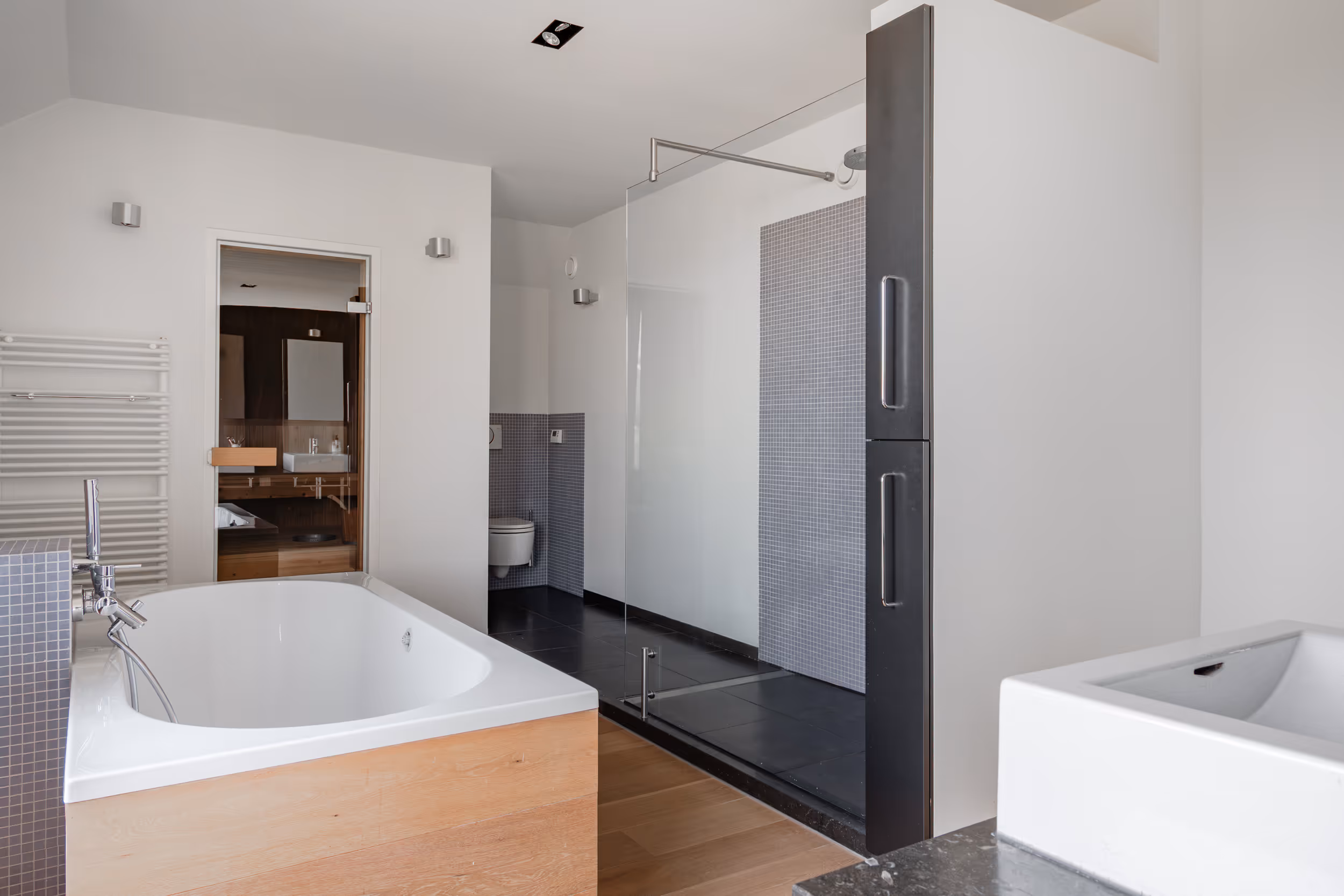 De eerste verdieping biedt een royale overloop met toegang tot drie ruime slaapkamers en een kamer die momenteel is ingericht als wasruimte. De master bedroom strekt zich uit over de volledige breedte van de woning en beschikt over een walk-in closet en een luxe en-suite badkamer met ligbad, dubbele wastafel, inloopdouche, toilet en sauna. Vanuit de slaapkamer en het brede balkon kijkt u uit over het omliggende landschap. Ook de twee andere slaapkamers beschikken over ingebouwde kasten, een balkon en luxe badkamers, allen voorzien van een toilet, douche en ligbad. Op de tweede verdieping bevindt zich een grote multifunctionele ruimte die zich perfect leent als extra slaapkamer, gym, atelier of speelruimte.