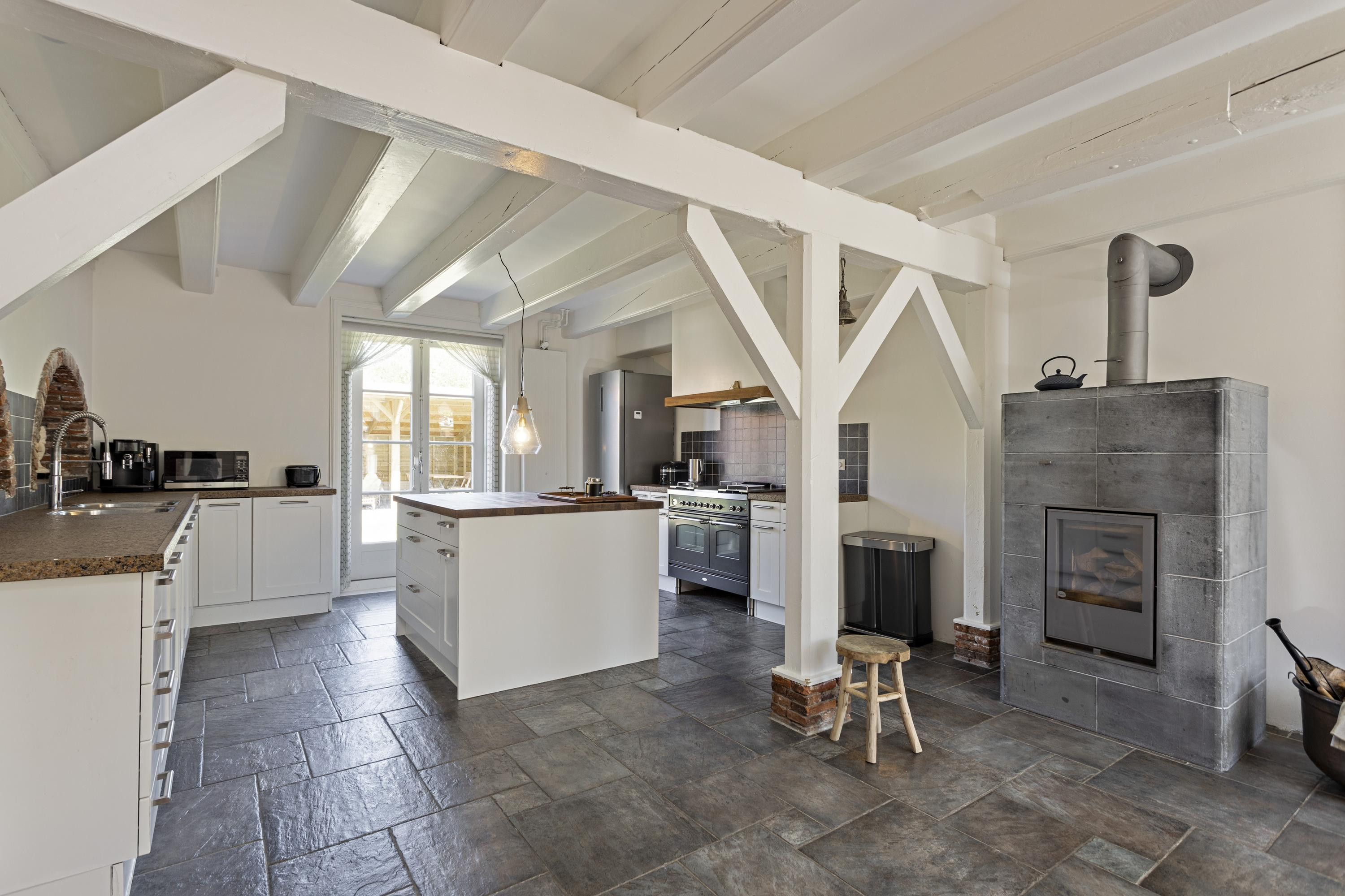 Binnen treft u een royale woonkeuken met kookeiland en hoogwaardige apparatuur, een sfeervolle living met veel daglicht en meerdere slaapkamers en badkamers op de begane grond, waardoor de woning levensloopbestendig is. Daarnaast beschikt het pand over een zeer ruime multifunctionele werk- of kantoorruimte van circa 95 m² met eigen entree, ideaal voor praktijk of kantoor aan huis.