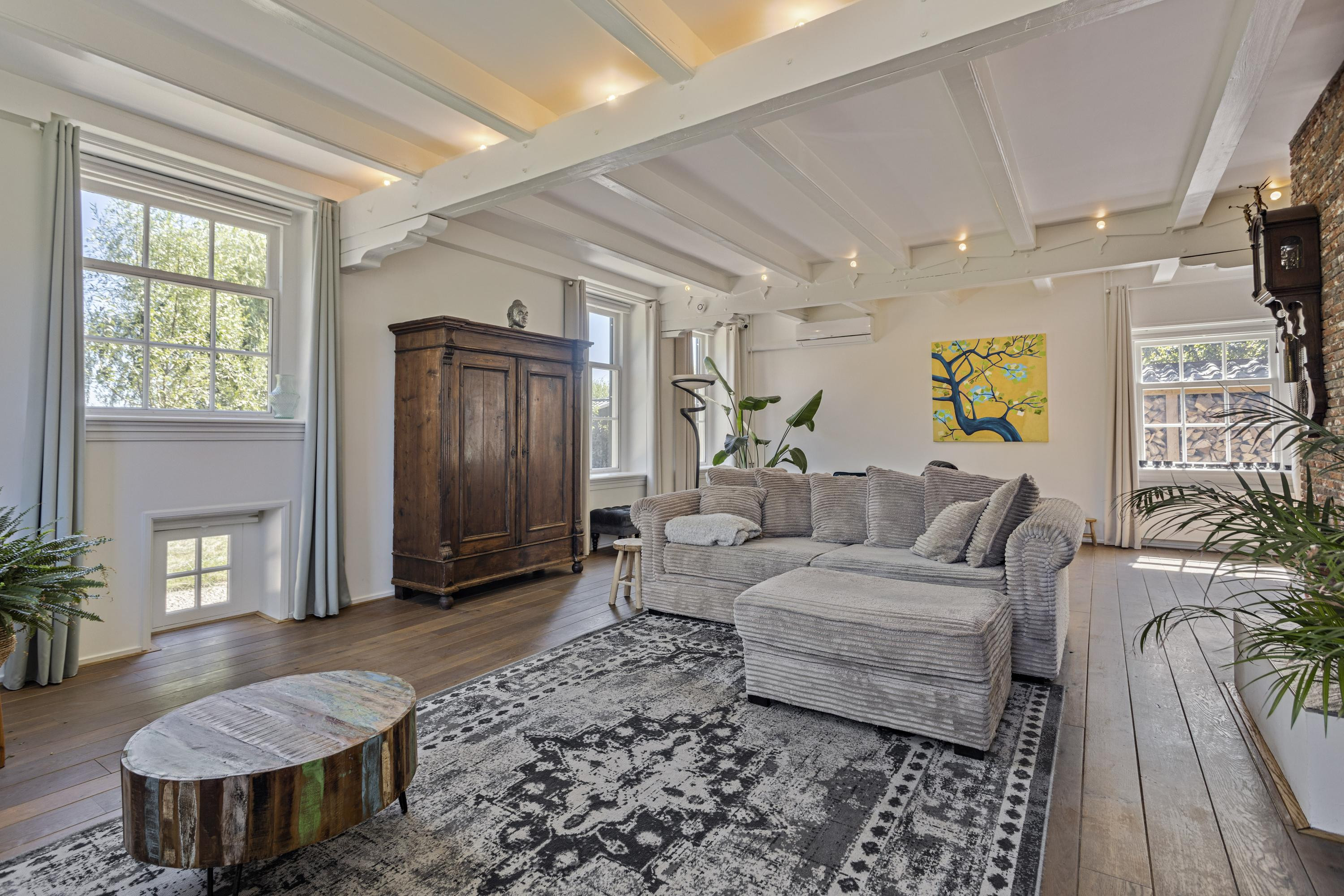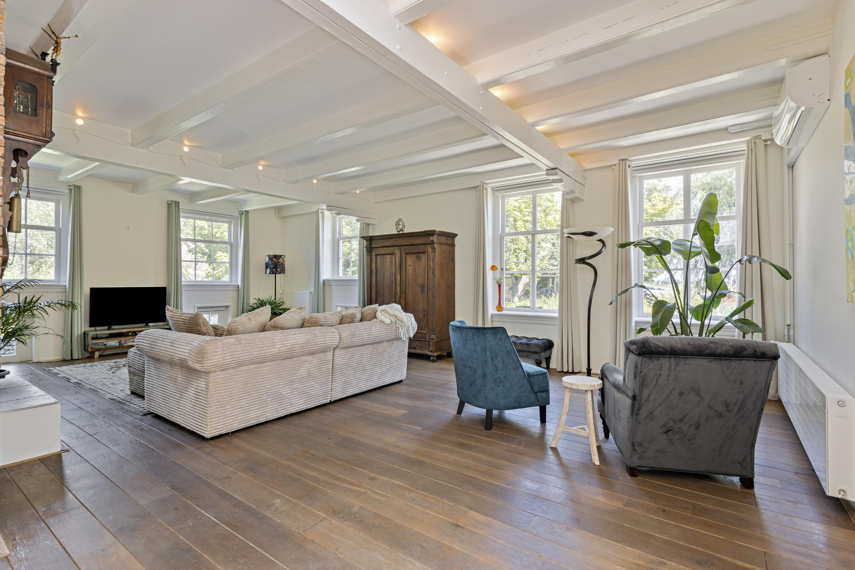 De woonboerderij ligt idyllisch aan vaarwater met een eigen aanlegsteiger en wordt omringd door een royale, zonnige tuin met terras, kapschuur en garage. Het karakteristieke rieten dak, de authentieke details en de eigentijdse afwerking maken dit object tot een zeldzame combinatie van historie en luxe.